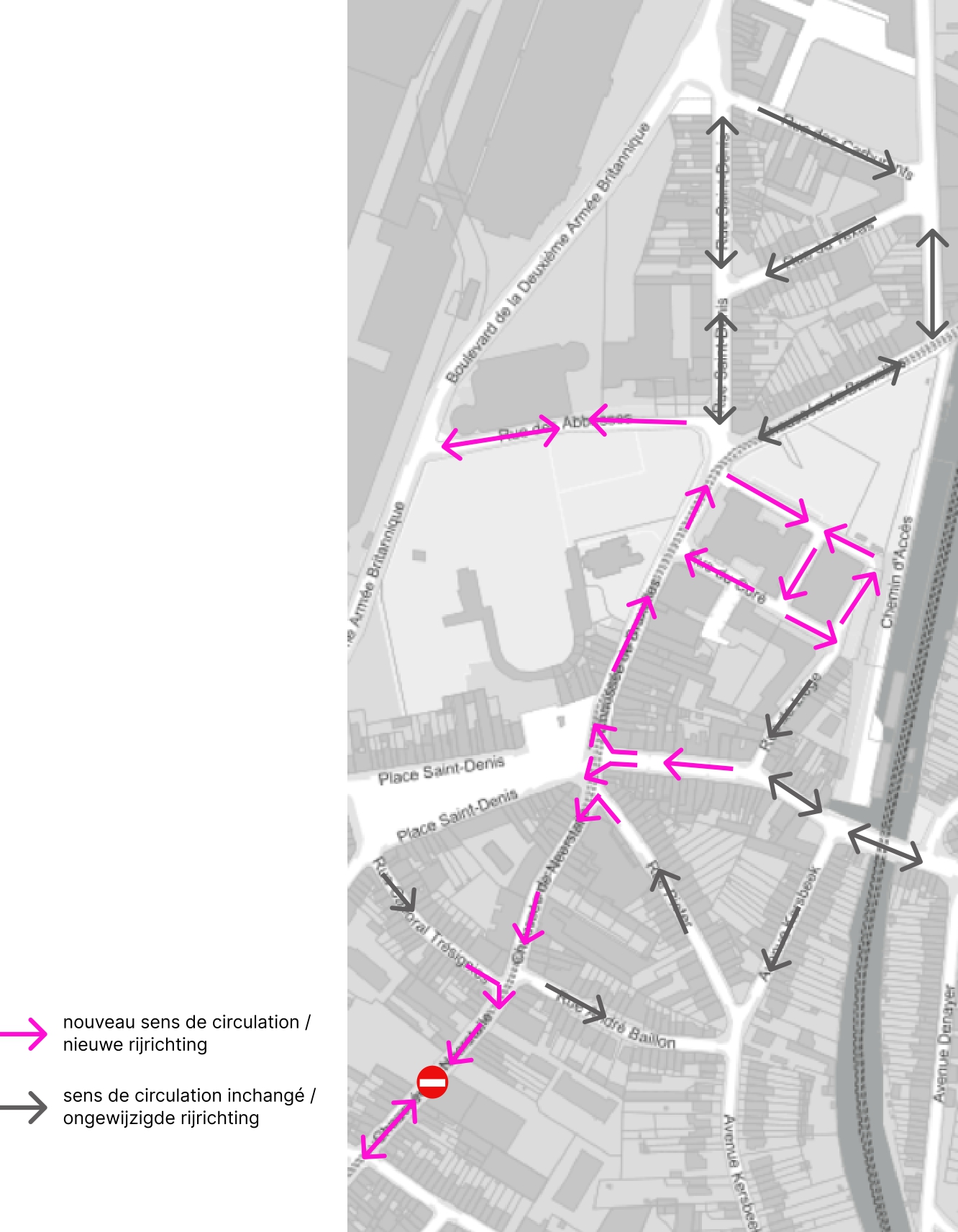 - un double sens en circulation locale entre l’avenue Général Dumonceau et le parking du Aldi, afin d’assurer l’accès pour les livraisons