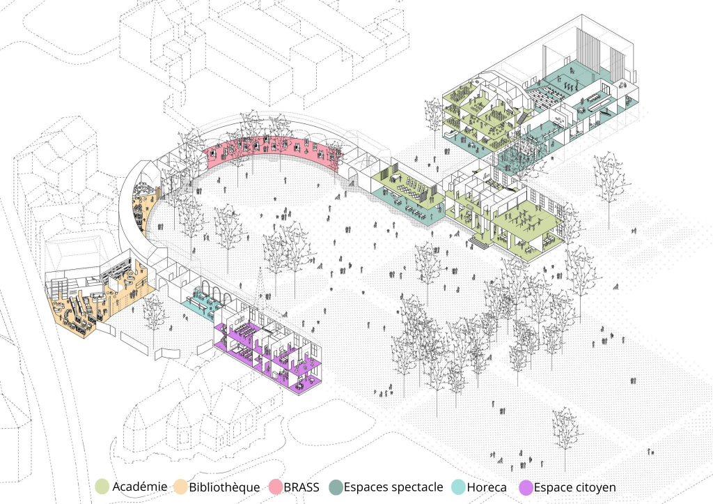 Le pôle culturel prévoit de nombreux espaces modulables destinés à l’accueil des activités culturelles des associations locales et des citoyens.