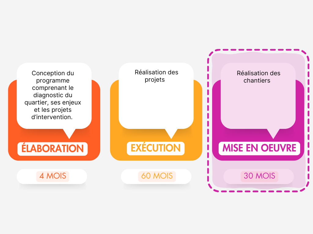 Entrée en phase d’exécution depuis mars 2021, la Politique de la Ville a bénéficié de délais supplémentaires suite à la pandémie Covid 19.