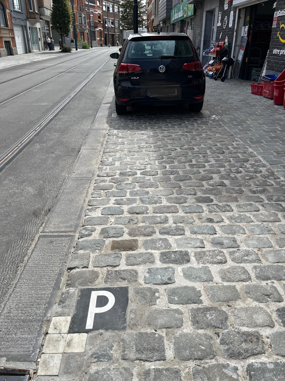 - Parkeren is er verboden, behalve op de plaatsen die op de grond zijn aangeduid met een andere kleur en gemarkeerd met een "P".