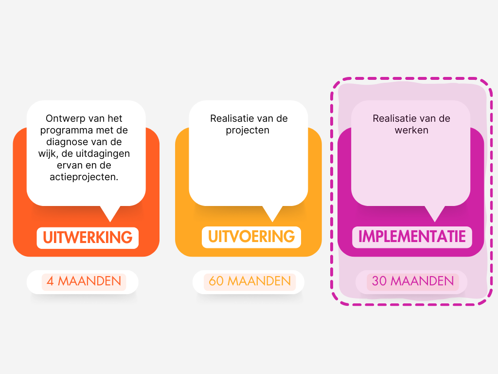 ** Gerealiseerd via meerjarenprogramma's in de Zone voor Stedelijke Herwaardering.